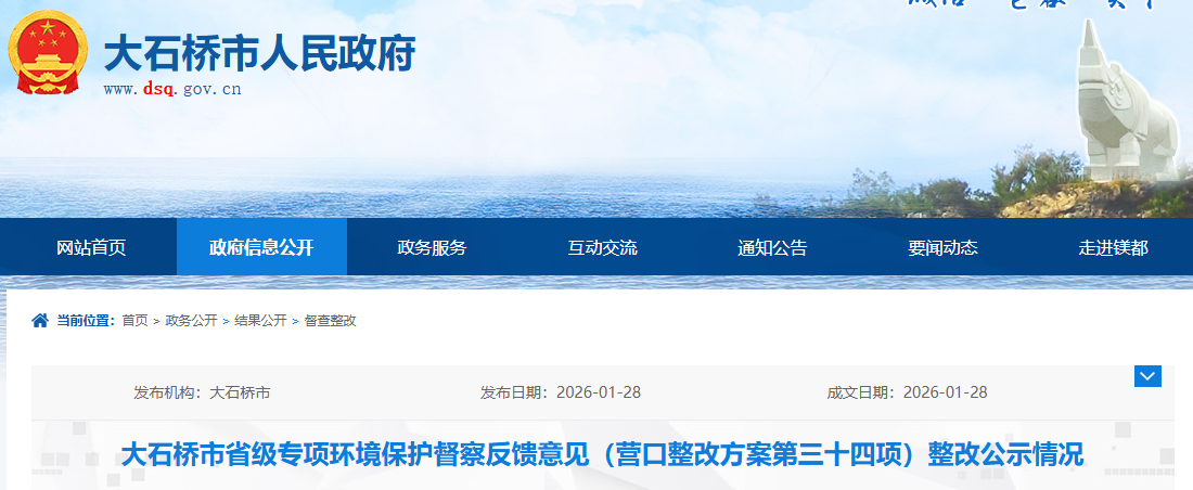 大石橋市環(huán)境保護(hù)督察整改領(lǐng)導(dǎo)小組辦公室
