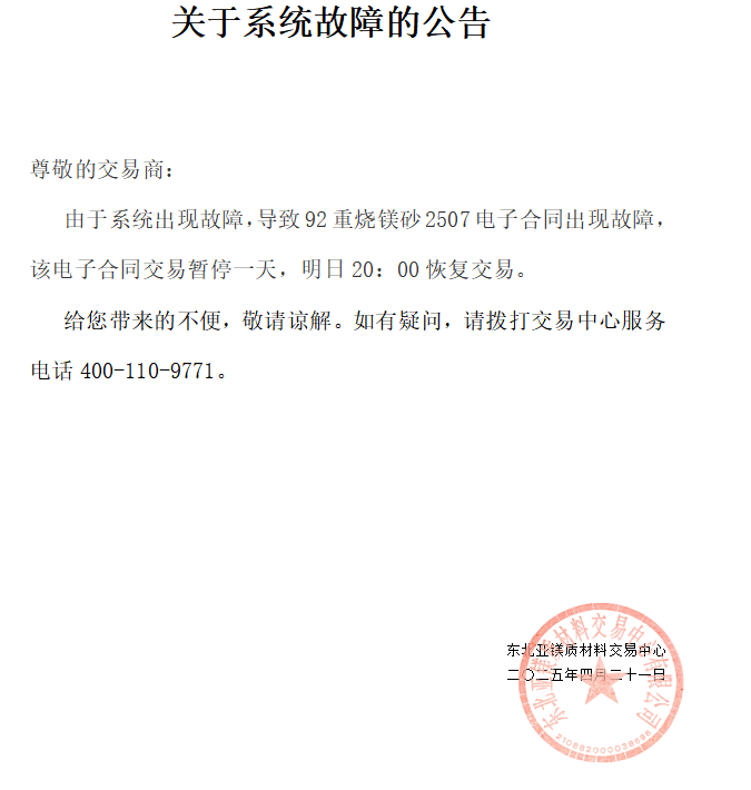 關于系統(tǒng)故障的公告